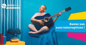 Une musicienne profite d’un moment de calme. Jouant de la guitare acoustique, elle vit chaque note de sa mélodie. Elle se sent détendue et concentrée. Jouer de la musique est, pour elle, un moyen de s’évader, de se recentrer sur elle-même, de faire le vide et ne penser à rien d’autre.